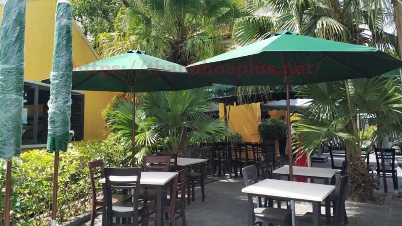 – **Giá dù che nắng quán cà phê Tphcm tham khảo:** Từ 1.500.000 VNĐ/dù.