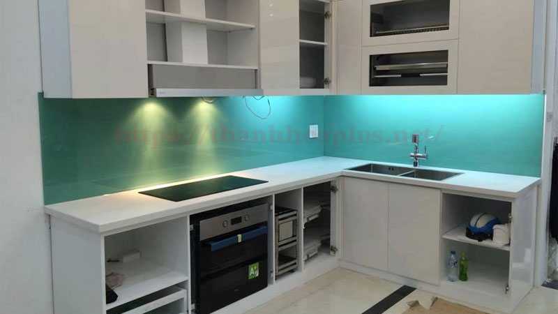 Quy trình thi công kính ốp bếp màu xanh ngọc chuyên nghiệp và chuẩn kỹ thuật